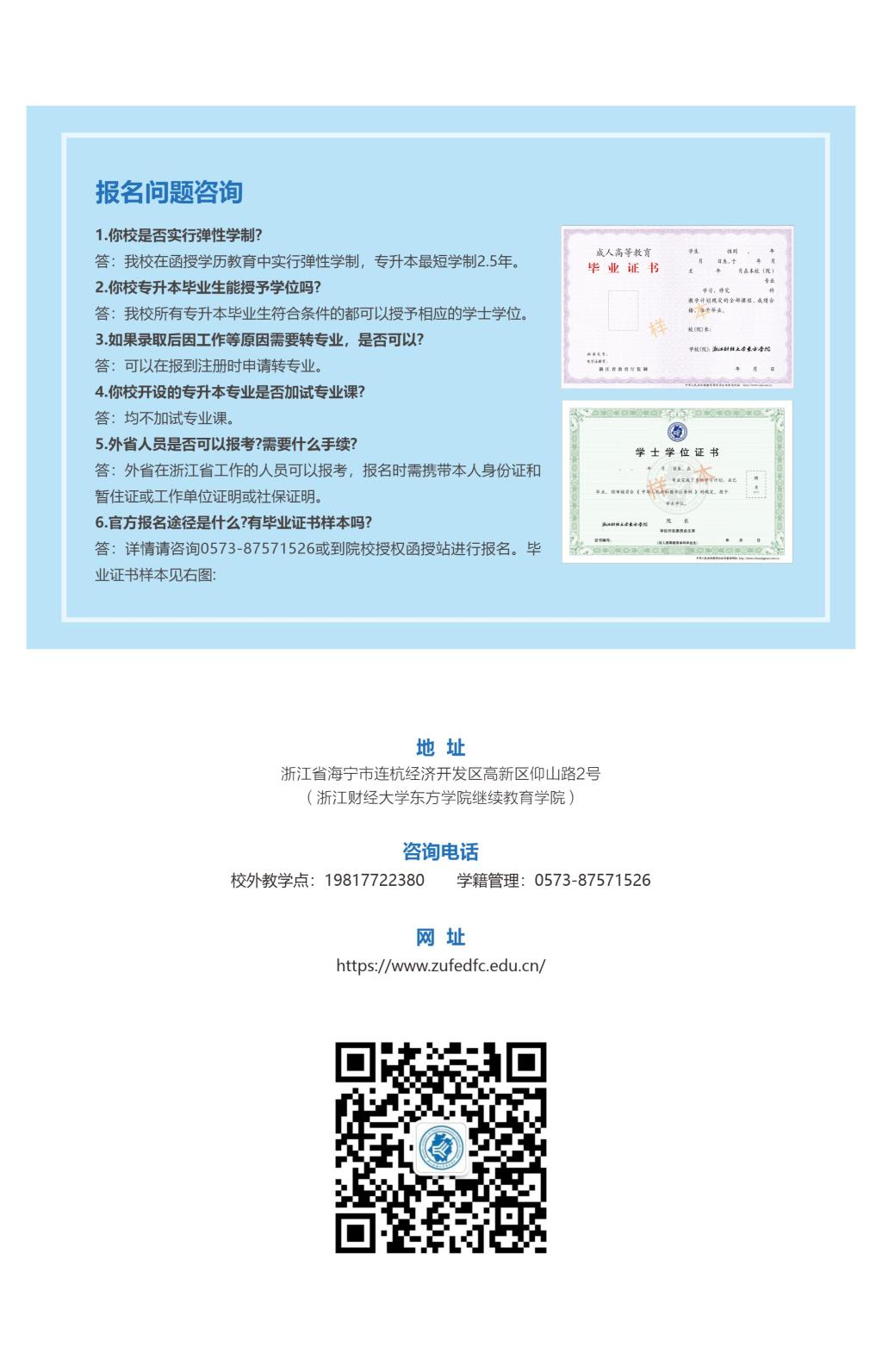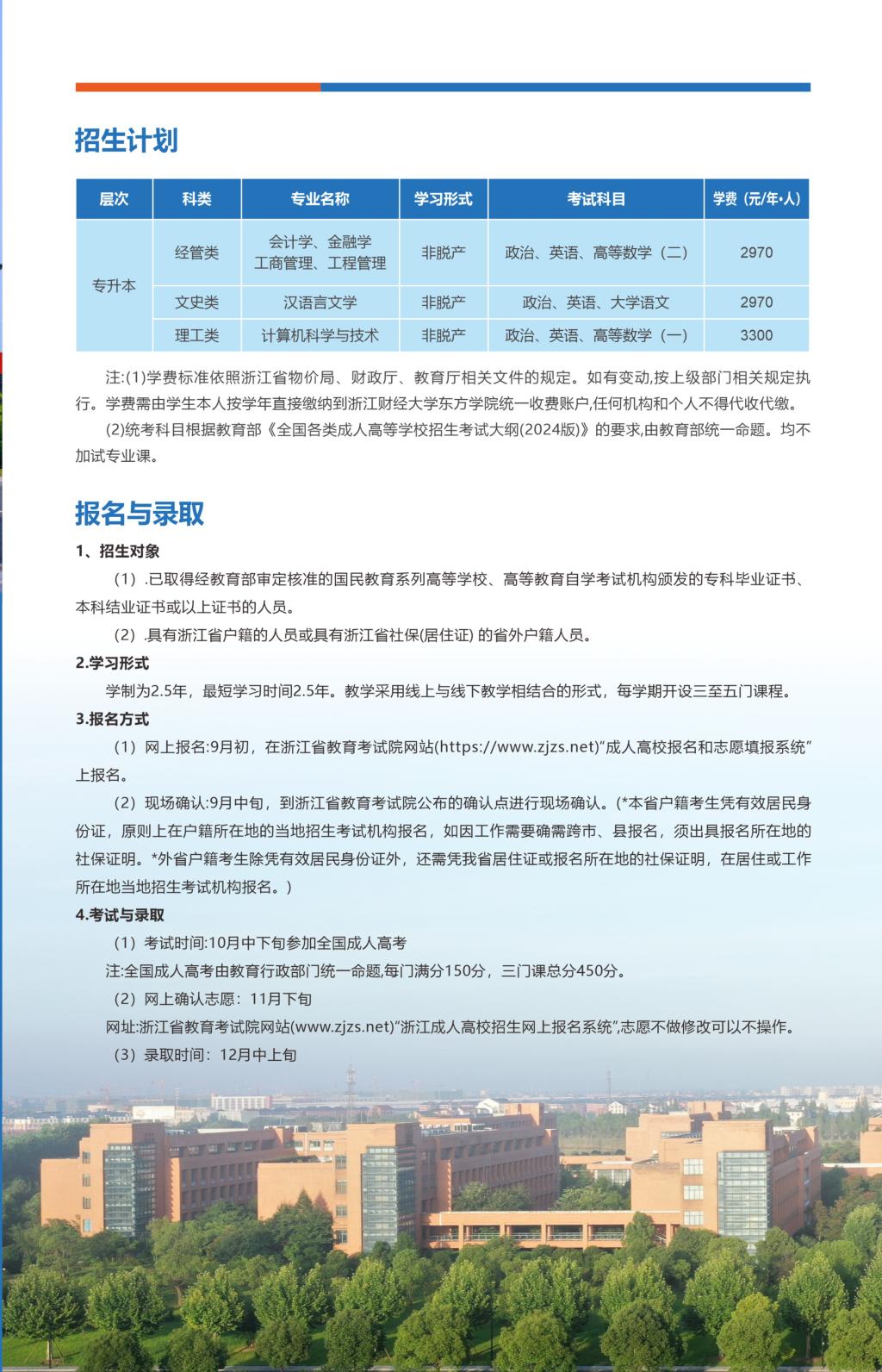 浙江财经大学东方学院2025年高等学历继续教育招生简章